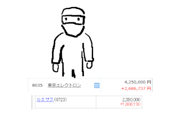 NVIDIAの株が上がり始めた頃、アメリカ株は空気感がよくわからないので、日本の半導体関連を買いました。